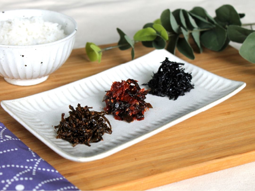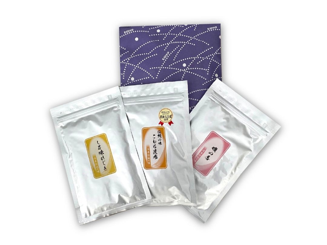 定番の「こもち昆布」「しそ味ひじき」「磯の香」を詰め合わせました。 - 常温保存OK・手軽に楽しめる